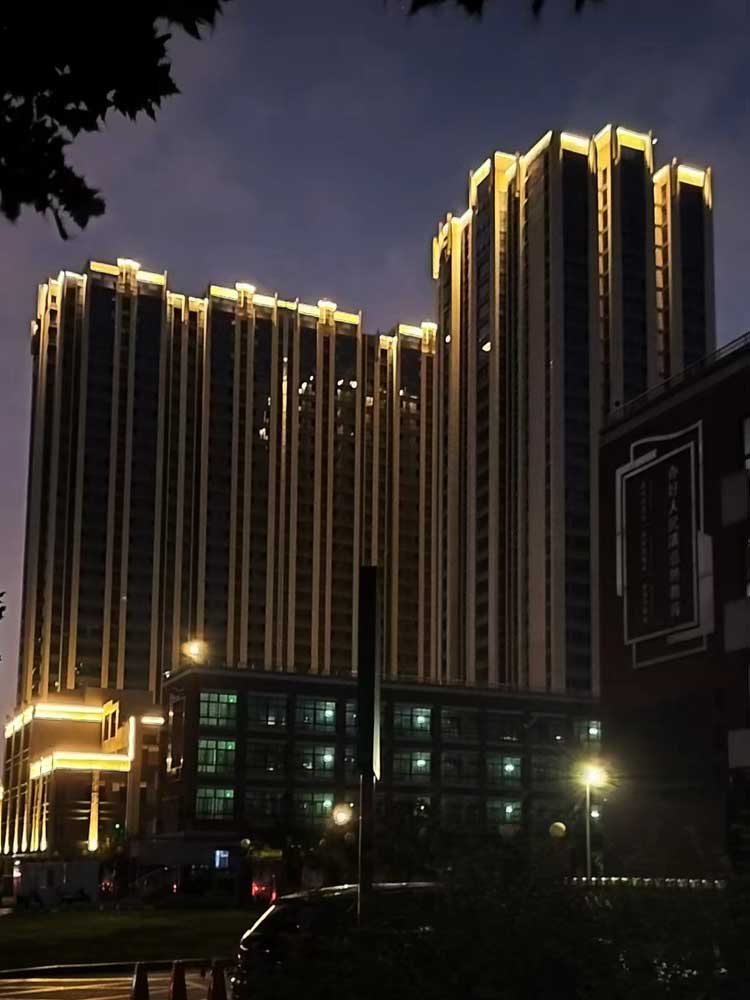 簡(jiǎn)介—— 蔚來(lái)熙語(yǔ)項(xiàng)目位于航天城航天中路與神舟二路十字東南角,項(xiàng)目占地15畝,由2棟公寓及其商業(yè)生活配套組成,Art deco的建筑風(fēng)格。我司承擔(dān)外立面亮化工程,對(duì)樓體頂部打亮及樓體線條的勾勒,做輪廓亮化,突出整體建筑,美化樓體。