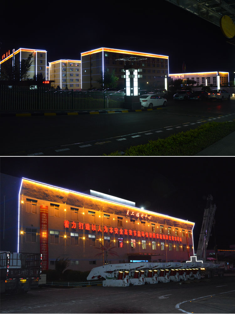 銅川建新煤化是我公司承接的廠區(qū)亮化工程之一,該項(xiàng)目整體從設(shè)計(jì)到施工,全程有我公司承擔(dān)負(fù)責(zé),設(shè)計(jì)根據(jù)甲方的要求,采用簡(jiǎn)潔明了的線條勾勒輪廓和打亮為主。在廠區(qū)主要的辦公樓、餐廳、員工活動(dòng)中心、員工福利中心、員工宿舍樓等員工主要活動(dòng)的場(chǎng)所樓進(jìn)行重點(diǎn)亮化。